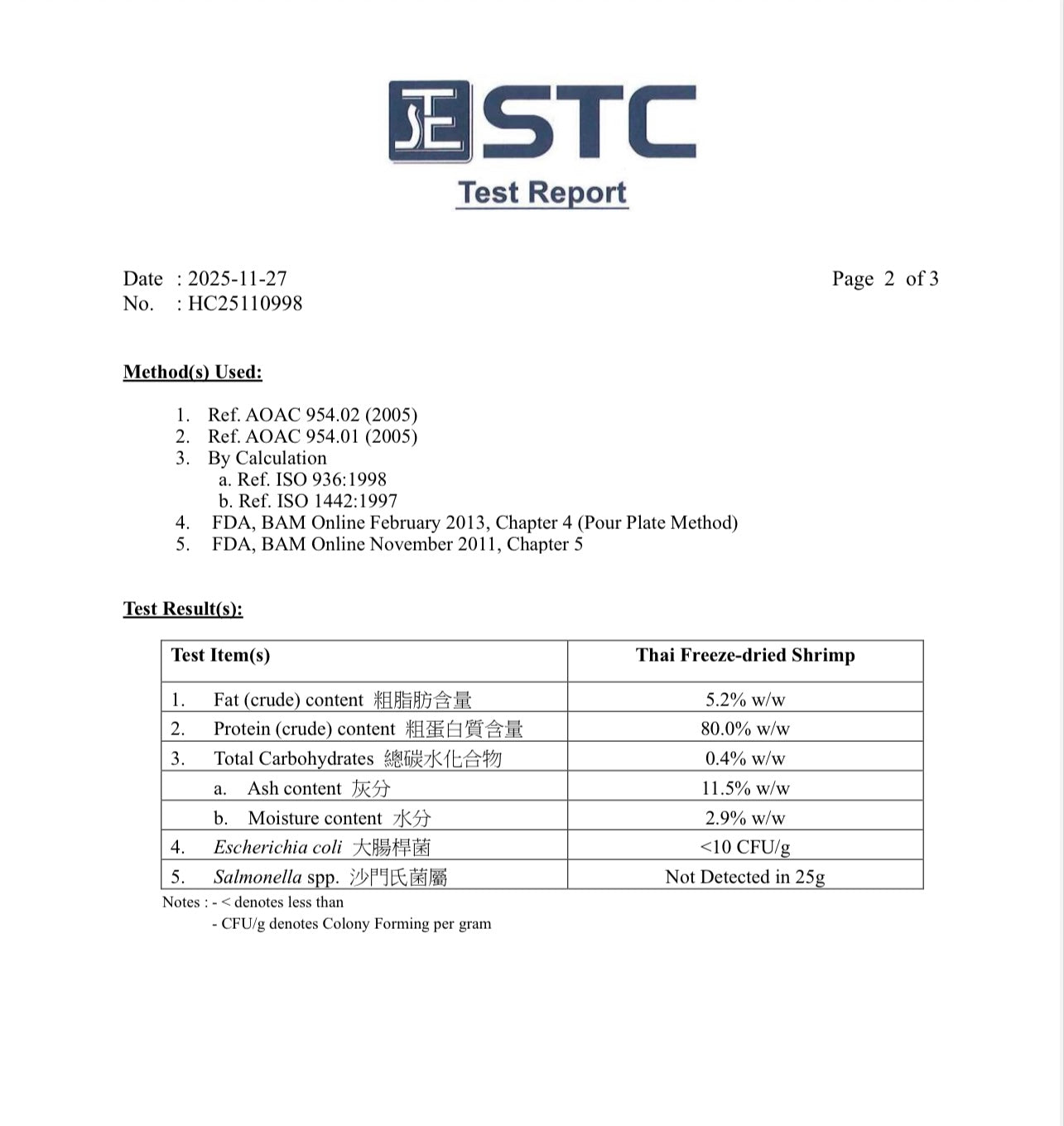 Our freeze-dried shrimps caught in Thailand for pets retain the original taste of the shrimps, allowing pets to enjoy the delicious taste of fresh seafood.